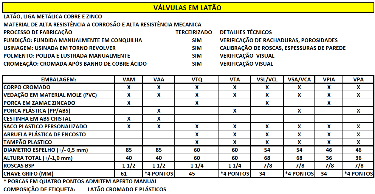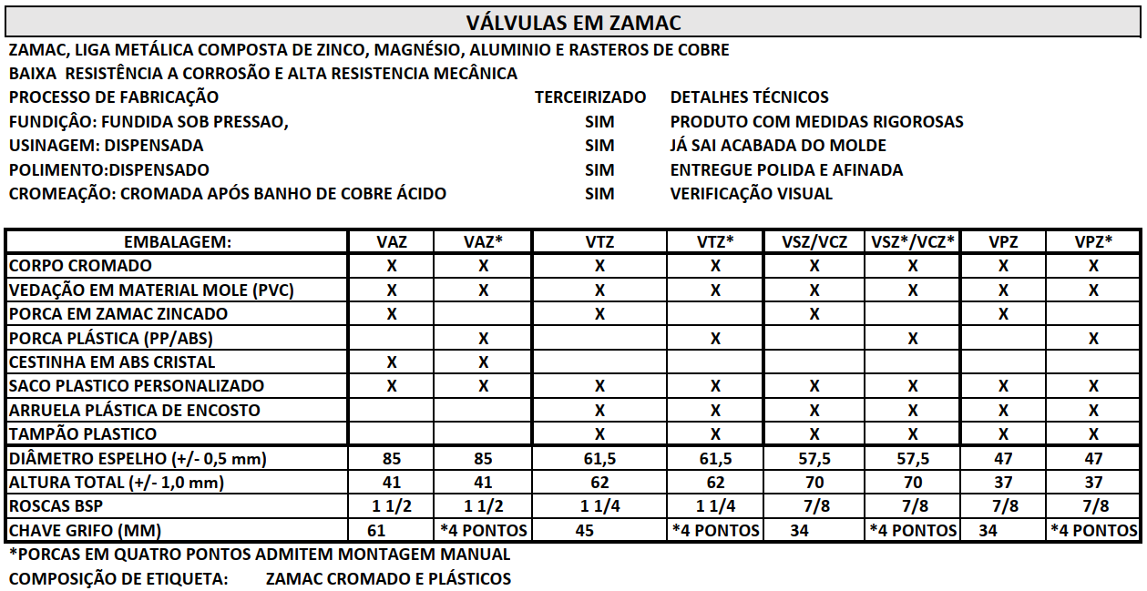 ou básicos de uso “doméstico”, sendo as de zamac muito mais econômicas em relação as de latão, em virtude da alta